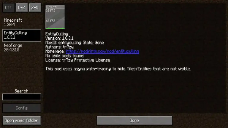 Entity Culling Mod para Minecraft 1.21, 1.20.6, 1.20.1 y 1.19.2